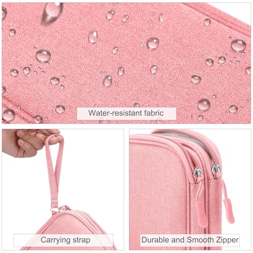 FYY Electronic Organizer, Electronic Accessories Carry Case Portable Waterproof Pouch Double Layers Storage Bag for Travel Cable, Cord, Charger, Phone, Earphone, Medium Size, Pink
